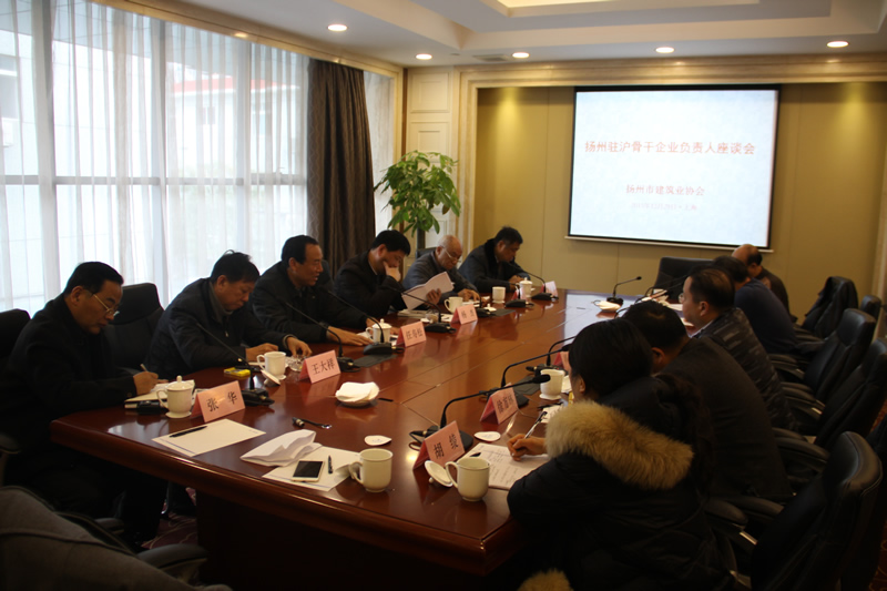 圖片新聞-“揚州駐滬骨干企業(yè)負(fù)責(zé)人座談會”在滬召開 時間:2015-12-30 6331 揚州市建筑業(yè)協(xié)會主辦、江蘇華建上海分公司承辦的“揚州駐滬骨干企業(yè)負(fù)責(zé)人座談會”12月29日在滬隆重召開 揚州市建筑業(yè)協(xié)會會長任壽松與江蘇華建副總、上海分公司總經(jīng)理楊杰親切交流