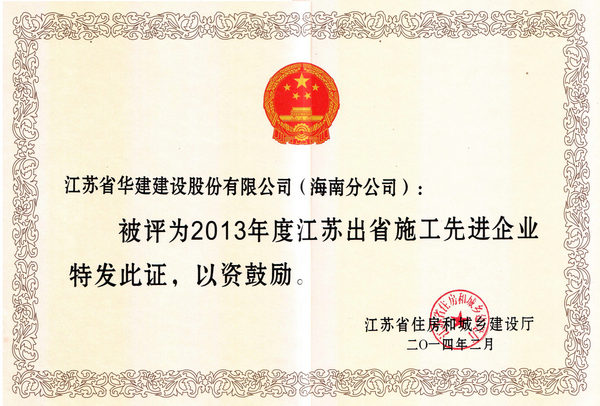 海南分公司榮獲2013年江蘇進粵、桂、閩、瓊施工先進企業(yè) 時間:2014-04-28 4078 4月25日,2013年度江蘇進廣東、廣西、福建、海南施工工作會議在珠海市市委黨校學苑賓館召開。會上,海南分公司榮獲“2013年江蘇進粵、桂、閩、瓊施工先進企業(yè)”,高家馴被表彰為“2013年江蘇進粵、桂、閩、瓊施工優(yōu)秀企業(yè)經理”,1人被評為優(yōu)秀建造師、2人分別被評為質量安全和經營財務管理先進個人。 另訊:4月19日,從中國施工企業(yè)管理協會第29次年會傳來喜訊,海南公司匡新益被評為2013年度“全國工程建設優(yōu)秀項目經理”。