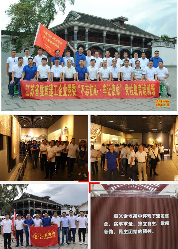 為深入學習貫徹黨的十九大會議精神,進一步加強黨員理想信念教育,弘揚傳承紅色革命精神。8月17日至20日,江蘇省駐瓊建工企業黨委、華建海南黨總支根據年度黨建工作計劃和部署,組織27名黨員干部赴貴開展以“不忘初心·牢記使命”為主題的第一批黨員培訓班,接受了一次深刻的紅色文化教育。