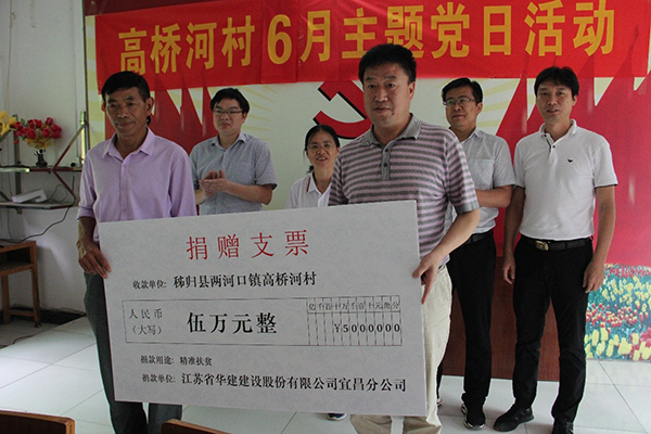 7月3日,宜昌分公司在宜昌市委常委、副市長(zhǎng)劉偉玲的見(jiàn)證下,與宜昌市江蘇商會(huì)和湖北廣盛建設(shè)公司共同參與秭歸縣兩河口鎮(zhèn)高橋河村精準(zhǔn)扶貧,各捐贈(zèng)精準(zhǔn)扶貧資金5萬(wàn)元。