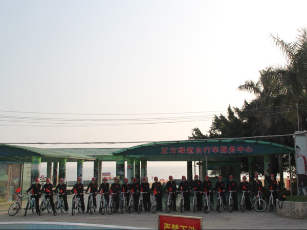 2012年1月1日上午9時(shí),珠海區(qū)域公司全體員工在公司經(jīng)理室的帶領(lǐng)下,統(tǒng)一著裝,頭戴印有江蘇華建標(biāo)識(shí)的安全頭盔,騎著統(tǒng)一插有江蘇華建小紅旗的自行車,沿著珠海海濱綠道開展騎自行車迎新年活動(dòng)。騎行的起點(diǎn)是珠海海濱浴場,終點(diǎn)是珠海淇澳島,來回全程56公里。騎行過程中,隊(duì)伍有序安全行進(jìn),引導(dǎo)車上醒目的江蘇華建大旗迎風(fēng)招展,每輛自行車前面的江蘇華建小紅旗也分外引人注目。繆國樞總經(jīng)理身先士卒,騎行在隊(duì)伍的最前面,無論是年近6旬的老員工,還是剛工作不久的新員工,個(gè)個(gè)爭先恐后,奮勇向前,江蘇華建這支特殊的“騎兵隊(duì)”在新年的第一天飛行在珠海的海濱綠道上,形成了一道亮麗的風(fēng)景線,引得許多路人和游客紛紛駐足觀望,許多攝影愛好者也紛紛舉起手中的相機(jī)爭相拍照。 這次元旦騎自行車活動(dòng)既是一次低碳環(huán)保生活的宣傳,也是一次江蘇華建員工良好精神風(fēng)貌的展現(xiàn),通過這次活動(dòng)既鍛煉了員工的體魄,更激發(fā)了員工們新的一年里奮發(fā)向上,團(tuán)結(jié)拼搏,奔向新未來的昂揚(yáng)斗志。