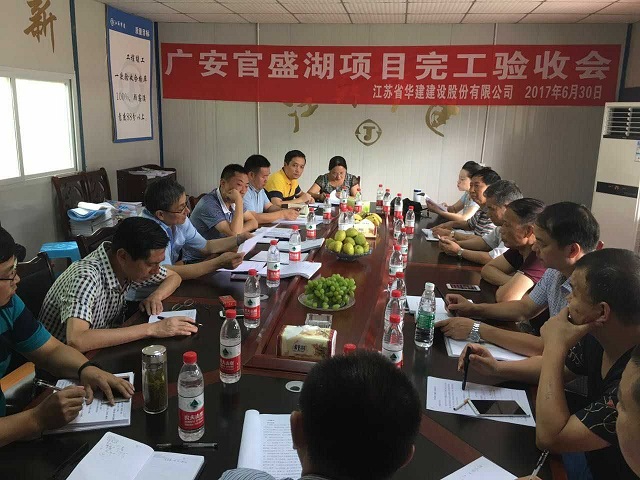 6月30日上午,華建首個水利項(xiàng)目——官盛湖大壩工程完工驗(yàn)收會在項(xiàng)目會議室召開,廣安官盛新區(qū)管委會副主任蔣成文主持會議。經(jīng)項(xiàng)目勘察、設(shè)計(jì)、監(jiān)理、區(qū)住建局、質(zhì)監(jiān)站、水務(wù)局、發(fā)改局、財(cái)政局等單位和業(yè)主現(xiàn)場代表實(shí)測檢查、分別總結(jié)匯報后,一致同意工程驗(yàn)收合格。