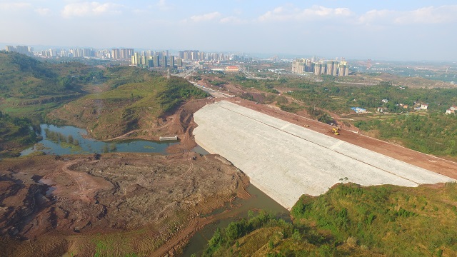 官盛湖大壩作為一項(xiàng)以城市景觀為主、兼有防洪功能的綜合性水利工程,主要由樞紐工程、泄洪渠工程組成。官盛湖湖區(qū)總庫容987.73萬立方米,壩頂長349米,最大壩高48.5米,壩體填筑總量達(dá)157.93萬方。