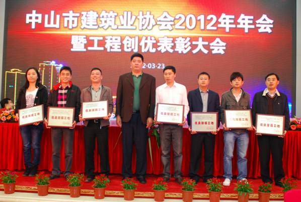龍灣花園一期項目榮獲“中山市安全生產文明施工優良樣板工地”稱號 時間:2012-04-11 5363 龍灣花園一期項目榮獲“中山市安全生產文明施工優良樣板工地”稱號 2012年3月23日,中山市建筑業協會召開了“2012年年會暨工程創優表彰大會”。與會501家會員單位中,共有25個項目獲得了“中山市建設工程安全生產文明施工優良樣板工地”稱號,由珠海區域公司中山分公司施工的“龍灣花園一期”工程項目榜上有名。 珠海區域公司中山分公司總經理嚴正濤(右一)在表彰會現場領取獎牌