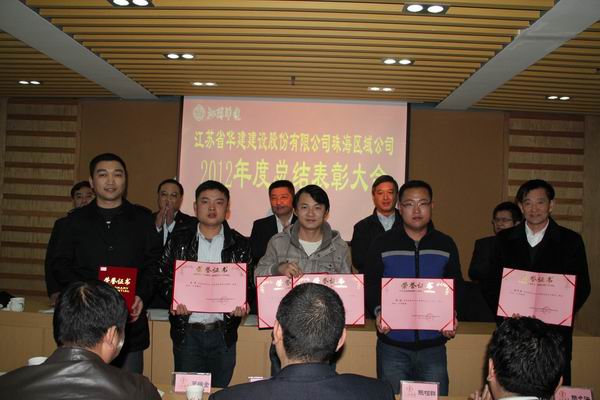 珠海區(qū)域公司召開(kāi)2012年度總結(jié)表彰大會(huì) 時(shí)間:2013-01-12 5916 2013年1月12日,珠海區(qū)域公司在珠海公司會(huì)議室召開(kāi)了2012年度總結(jié)表彰大會(huì),各工程處主任、直管項(xiàng)目經(jīng)理、先進(jìn)個(gè)人代表、公司機(jī)關(guān)全體人員共66人參加了會(huì)議。會(huì)議由公司副總經(jīng)理盧達(dá)同志主持,江蘇華建副總經(jīng)理、珠海分公司總經(jīng)理繆國(guó)樞同志作了工作報(bào)告。繆總的工作報(bào)告從七個(gè)方面對(duì)珠海區(qū)域公司2012年度的工作做了認(rèn)真的總結(jié),并對(duì)2013年的工作提出了打算。分公司副總經(jīng)理嚴(yán)正濤同志在會(huì)上對(duì)區(qū)域公司2013年生產(chǎn)經(jīng)營(yíng)工作計(jì)劃作了解讀,對(duì)2013年的主要經(jīng)營(yíng)指標(biāo)進(jìn)行了分解,明確了各工程處(直管項(xiàng)目部)的具體指標(biāo)任務(wù)。會(huì)議表彰了徐平等23名先進(jìn)個(gè)人和“陽(yáng)江陽(yáng)光馬德里項(xiàng)目部”等3個(gè)先進(jìn)單位,分公司副總經(jīng)理、總工程師周學(xué)軍同志宣讀了表彰決定。大會(huì)結(jié)束后繆國(guó)樞總經(jīng)理代表區(qū)域公司與2012年下半年新開(kāi)工的5個(gè)項(xiàng)目部簽訂了修改后的內(nèi)部承包協(xié)議書,修改后的內(nèi)部承包協(xié)議加大了創(chuàng)建品牌的獎(jiǎng)勵(lì)力度,激勵(lì)新開(kāi)項(xiàng)目爭(zhēng)創(chuàng)優(yōu)質(zhì)工程,為提升企業(yè)形象,鑄造企業(yè)金字招牌多做貢獻(xiàn)。