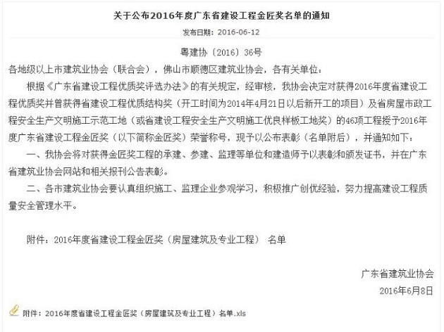 公司“陽(yáng)光馬德里花園二期53-55棟”項(xiàng)目喜獲“廣東省建設(shè)工程金匠獎(jiǎng)”