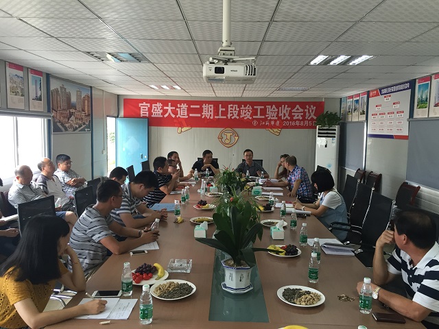 廣安項目官盛大道二期上段順利通過竣工驗收 時間:2016-08-05 3098 8月5日上午,廣安項目官盛大道二期上段順利通過竣工驗收。廣安區住建局副局長周春蘭主持驗收會議,經項目監理、設計、區住建及質監等單位和業主現場代表實測檢查、分別總結匯報后,一致同意工程驗收合格。 官盛大道二期是廣安官盛新區一條東西向城市主干道,道路全長1598米,標準路幅寬度46-60米,雙向六車道,設計時速60km/h。其中上段610米,作為一個單位工程單獨進行驗收。