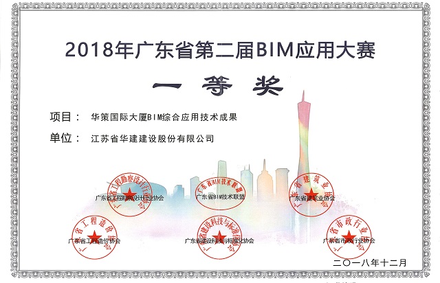 12月14日,在廣東省住房和城鄉建設廳指導下,由廣東省BIM技術聯盟聯合包括廣東省建筑業協會在內的5家協會共同舉辦的廣東省第二屆BIM應用大賽頒獎典禮落下帷幕,江蘇華建珠海分公司申報的《華策國際大廈BIM應用成果》榮獲一等獎。