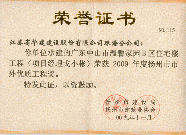 2009年溫馨家園B區工程揚州市瓊花杯