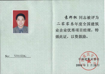 他本人先后被評(píng)為深圳市優(yōu)秀項(xiàng)目經(jīng)理、揚(yáng)州市優(yōu)秀項(xiàng)目經(jīng)理、江蘇省優(yōu)秀項(xiàng)目經(jīng)理、江蘇省建筑業(yè)質(zhì)量管理先進(jìn)個(gè)人、揚(yáng)州市勞動(dòng)模范、江都市有突出貢獻(xiàn)的中青年專家、建設(shè)部優(yōu)秀項(xiàng)目經(jīng)理,在國家級(jí)刊物發(fā)表論文40多篇、省和國家級(jí)工法8項(xiàng),并有5項(xiàng)專利,為企業(yè)的發(fā)展作出了較大貢獻(xiàn)。