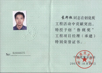 他努力踐行科學(xué)發(fā)展觀,狠抓施工技術(shù)管理,擔(dān)任項(xiàng)目經(jīng)理多年,負(fù)責(zé)施工的工程屢創(chuàng)佳績,屢獲殊榮,他負(fù)責(zé)施工的項(xiàng)目達(dá)35項(xiàng)之多,建筑面積97萬m2,其中18層以上31幢。工程質(zhì)量幢幢優(yōu)良,8項(xiàng)工程獲江蘇省優(yōu),1項(xiàng)獲廣東省優(yōu)工程,6項(xiàng)獲深圳市優(yōu),兩項(xiàng)獲深圳市最高質(zhì)量榮譽(yù)“金牛獎(jiǎng)”,兩項(xiàng)問鼎中國建設(shè)工程最高質(zhì)量榮譽(yù)魯班獎(jiǎng)。袁邦權(quán)項(xiàng)目部業(yè)成為業(yè)內(nèi)有影響的锃亮品牌,先后被授予公司雙文明先進(jìn)集體、公司思想政治工作先進(jìn)單位,“江蘇省青年文明號(hào)”、“全國青年文明號(hào)”等光榮稱號(hào)。